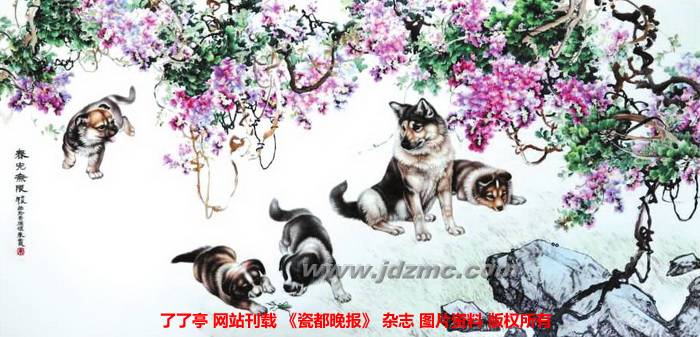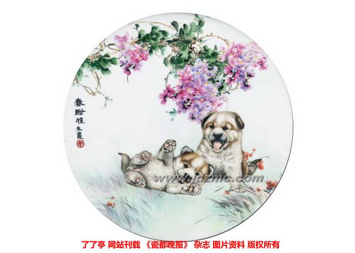 尝试一项新的工艺历时长达两年创作出的陶瓷作品,有买家开价88万元,她不为所动。这在逐利的当下是很不容易的,而这种坚持肯定是建立在朱霞独立创作的真实性和作品艺术性基础上的。朱霞喜爱陶瓷艺术创作,特别是人物花鸟,在她的创作中基本能找到一种花卉—— —紫藤,这俨然成为她所作画面中的标志性存在,也因此,圈内赠她“紫藤仙子”雅号。