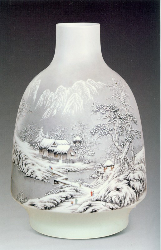 喻惠庭 1966年生于江西景德镇,高级工艺美术师,毕业于南昌大学。系中国工艺美术学会会员。擅长陶瓷粉彩雪景山水。