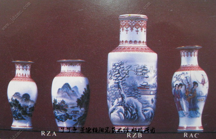 这些资料来源于中国工艺品进出口公司江西省陶瓷分公司的一份宣传画册,个人感觉虽然有些参考价值,但是对于鉴定方面可能作用不大,其中瓶子类全部翻拍,雕塑类基本上都没有拍照,因为这些雕塑都很传统,有些到现在还在生产。至于这些资料的产出年代个人推算是改革开放后的东西。了了亭·李申盛/文
