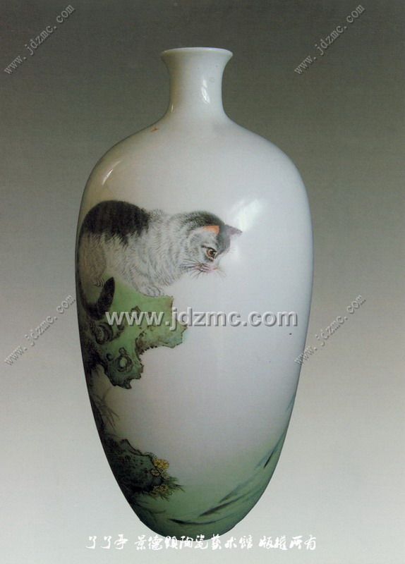 艺术特色: 擅长综合运用各种材质、技巧创作作品,因而形式丰富、题材广泛。在风格多样的陶瓷器皿上装饰适合的题材,利用巧妙的构图达到水乳交融两者合一的效果;有目的地刻画人、动物的眼神和肢体语言来表达人、动物的丰富内心情感;以特定的置景环境表现地域文化、时代文化特色;巧妙地运用绘画色彩语言,增强作品感染力;逐字推敲的配景诗句画龙点睛地突出作品主题。通过精心布局的画面,效果赋予作品深刻内涵,在给予人美的视觉享受之时,达到哲理育人的效果,这是一直努力追求的艺术创作目标。 此次赏评展共计展品八十余件,绝大部分是零七、零八年度闭门谢客、潜心创作的作品,材质为高温瓷器。装饰品类分为釉上粉彩瓷、古彩瓷、釉下青花斗彩瓷、色釉装饰瓷、雕刻瓷等。 作品题材风格分类: 一、 动物题材 (1)十二生肖 (2)虎、狼、狗、猫、松鼠、鸡、鱼等动物题材 表现风格:作品捕捉到动物瞬间的动感姿态,精心运用不同技法刻画出动物各自不同的皮毛特点,从内到外表现出皮毛骨骼的真实质感,力求达到形神兼备的效果。配以不同环境置景,使作品情趣横生、寓意深刻。努力探索与提升陶瓷动物画的品质和境界。 二、古代仕女系列 表现风格:以传统的线条描绘古代女子纯情秀丽的姣容,活泼多姿的婀娜动态,配以独创的技法表现的“薄如蝉翼”的衣群,使“吴带当风、曹衣出水”的传统技法风格得到高度提升。通过寓意点睛的诗句,力求达到诗情画意的美妙境界。 三、现代漂亮妈妈系列 表现风格:以现代色彩、现代人物形象创作青年妈妈和孩子嬉戏玩耍的生活场景,展示母子之间心心相融的内心情感。并且体现了现代生活的富裕、幸福和安宁。改变了工艺美术作品中较少表现现代题材的惯例。 四、 地域风格女性系列 表现风格:以岭南、江南服饰,特色植被场景等来展现不同地域文化风貌。拓展了陶瓷人物绘画的题材,进行了多方位艺术风格的创作,也突出了本土文化和地域特色。