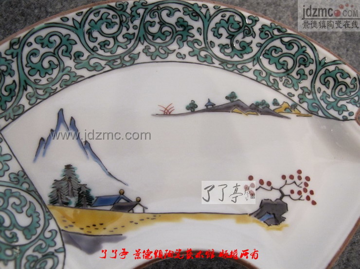 3月6 日下午,记者在2010 景德镇中村元风陶瓷艺术作品展上看到,展厅内摆放着许多五彩山水作品,有大小不同的五彩瓷瓶作品,还有各种形状的五彩瓷盘作品,细细观赏却发现这些五彩作品的赋色与画面题材与传统五彩作品不同,有着较为明显的个人风格。 在您看图片前,首先要说明的是中村元风老师的这些作品是古彩又称五彩。而且全是日本的配料。 我只是授权拍摄前面两页的图片资料,后面的是景德镇一位朋友拍摄的,我征集过来的。
