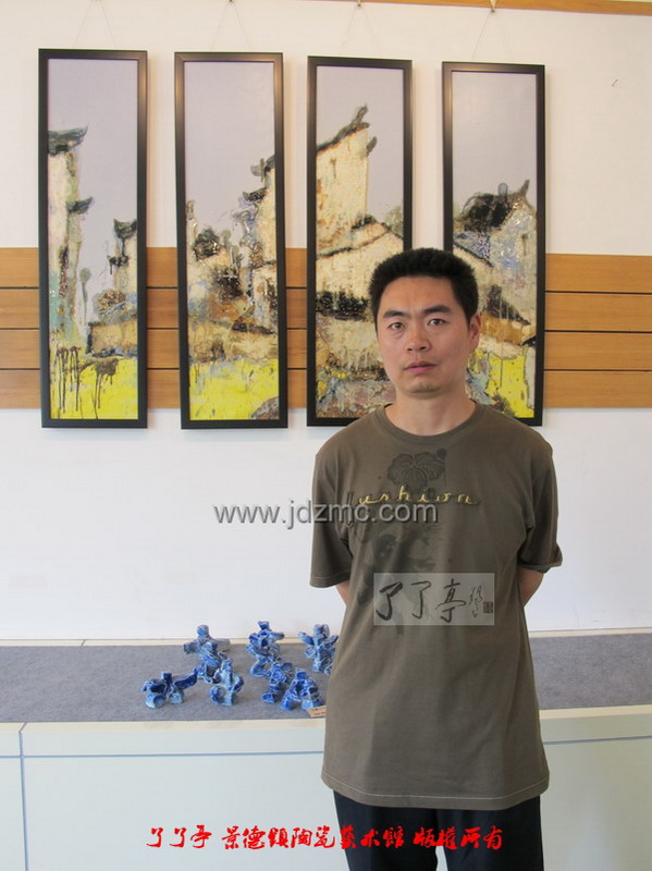 在陶院学习陶瓷的过程中,接触到釉是再自然不过的事,而我们却为那变化丰富的釉色着迷,于是想到如何在我的创作中利用这神奇的釉色,于是从点滴开始,了解釉的特性,试灶子、小色稿、小幅画、大幅画…,就这样一步一个脚印地走来,在运用高温色釉绘画的过程中,体会到从未有过的兴奋,每一次都是新的期待,入窑时的忐忑、开窑时的激动。那种感觉很让人着谜,正是在这种希望与失望的交替转换中,于是便有了用梦幻般的釉彩演绎传统经典的《似曾相识》系列和《汉唐气象》系列,有对童年向往的《童话》系列,还有对深蕴中国文化的徽派民居思索的《家园》系列。 对于物象的描述应透过表象关注物象的内在。塞尚的“非理性笔触”,有意识地破坏理性,把绘画创作的动态寻找过程冻结住而不去完成的现代艺术观,而这种对形式的处理所搭建的整体画面也正是服务于内在的秩序或者说精神。如《似曾相识之聊》运用了不同于以往的瓷上人物绘画的技法,以色块与不同色釉之间经高温反应自然形成的线重新塑造形体,任“意”泼洒或点涂釉浆,十几种不同的色釉并置或重叠,不断地消减和破坏对人物形体习惯性的诠释和解说类的画法,最终经由火的历练呈现出酣畅与灿烂的效果。将具有汉唐特征的仕女人物的形式感进行提炼,通过纯度不高的绿、蓝、紫、黄、白等色釉的发色共同呈现出一种朦胧的时空感,将人物的面部简化成椭圆形,略去了五官,通过人物的动势与背景的衬托带给读者的是人物的一颦一笑间的联想。石涛所讲的“不似之似似之”,“不似”是非常理的对机械复制的破坏,如果经过这种非理性的破坏之后作品却更以,这才是真的似。 实现色彩的纯粹造型观念,有意识的超越令眼睛感觉色彩丰富的表象,创造色彩感觉与坚实的造型相结合的绘画色彩知觉,如运用高温色釉创作的《宏村印象》没有表现现实中固有的颜色,而是有意识的选取黄色系窑变釉丰富的发色和肌理表现坚实厚重的老墙,右侧明亮的窑变釉表现感受到的阳光,用蓝紫色窑变釉表现水面,与大面积的黄色形成对比,用清澈润泽的影青釉表现天空,用水平线概括出徽派建筑的典型风格,用高温色釉烧制过程中自然形成的竖线表现老屋那种沧桑厚重的时空感。 《庄子·外物》说:“荃者所以在鱼,得鱼而忘荃;蹄者所以在兔,得兔而忘蹄;言者所以在意,得意而忘言”。中国水墨画是一种抽象的笔墨表现,它不以描摹实物为宗,而着意于人格情感的表现,具有形、线所表现出的意象美。才R植于中国绘画艺术的陶瓷艺术形式,其艺术形态折射出自然、率真、物我为一的审美思想,其境界统一于中国绘画达“意”的宗旨。 时光飞逝,转眼三年的研究生学习就要结束,此次展览展出作品共30余件,总想留下一点印记,记下自己的一段历程,留下一点对陶瓷的感受,一点思索。当然还不够成熟,有待完善。但仍然在这里向相识和不相识的老师、朋友们展示,也算是我们真诚的交流。 感谢您在这个初夏时节抽空在我们的作品前驻足,期盼你给我们提出宝贵意见,有了你的鼓励我们会勋口坚定地走向前!——马丁民 由翠青
