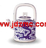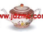 有明一代,青代瓷泛滥开来,青花瓷壶也不难寻觅,至少民窑细路的东西不时尚能仿到。后来又有了五彩、斗彩,清代更有了粉彩、珐琅彩、浅绛彩、金银彩、红绿彩什么的,于是壶也多彩了,不光色彩班斓、造型多样,用途也广泛得很。从莽汉们解渴的粗瓷大茶壶,到闺阁女儿家进补参汤小壶,即便不算砚滴之类很像壶的其他水器,也确实用途宽泛,很可以著书立说了。譬如以质地分,从陶到青铜、金银、瓷和紫砂等;以用途分,有水壶、酒壶、茶壶、汤壶或者药壶等;以形状分,以圆柱、方棱柱和球形为基本形态,其中又有瓜形、卵形、梨形以及钟形等。就是瓷壶,至少有青瓷和彩瓷之别,彩瓷中又有青花、五彩、粉彩诸如此类的变化。就是从彩绘的图案上,也能分成山水、花鸟等。总之,很庞杂,很有些学问和乐趣,不怕牵强的话,说出七道、八道来并不难。