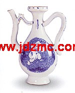 壶,从上古一种深腹 、敛口的器物分化出来的,多用于盛水,也盛流质的汤泡饭之类。《韩非子·外储》中称“壶餐”的,据说就是一种用壶盛泡饭的大餐。但壶的主要功能是盛水,所以还是被归入水器。因为,水这种东西很难盛,古人发明了陶器以后,主要就是用来盛水。有汲水用的,大抵是种尖底的长形圆罐儿,甘肃马家窑出土的最精彩,如今就连假 的都不难卖;有取水蓄用的,腹部圆滚滚的,仰韶文化的彩陶中很多,肩部一般都有系。当然,盛水的盆、罐,烧水用的鬲,喝水的杯、钵等都是水器,只不过是些分工很细的东西了,可最多的还是壶。