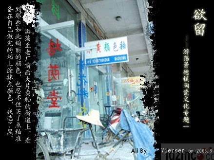 1 “我们游荡至老厂前面大片卖釉的街道上,看到那些如此绚丽的颜色,也忍不住买了点准备在自己完成的坯上涂抹点颜色,我选了黑。”