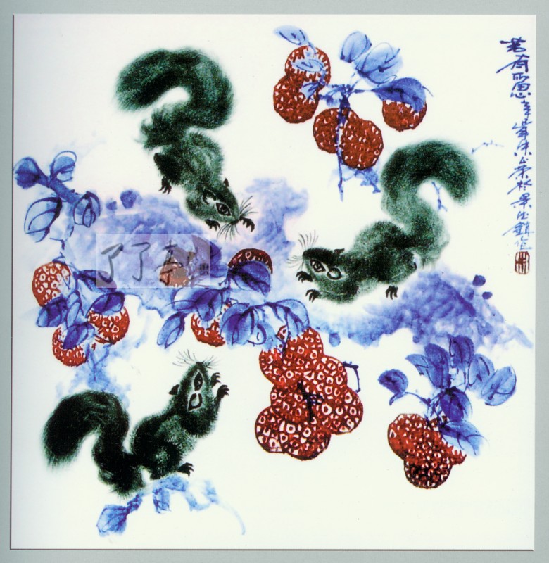 我在创作动物系列作品以前,经过了一段观察、写生过程。为了仔细观察小松鼠的动态特征,饲养过小松鼠。朝夕相伴,写生作画,就会对动物产生感情,而感情又往往是灵感的源泉。