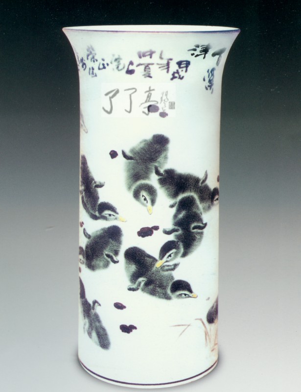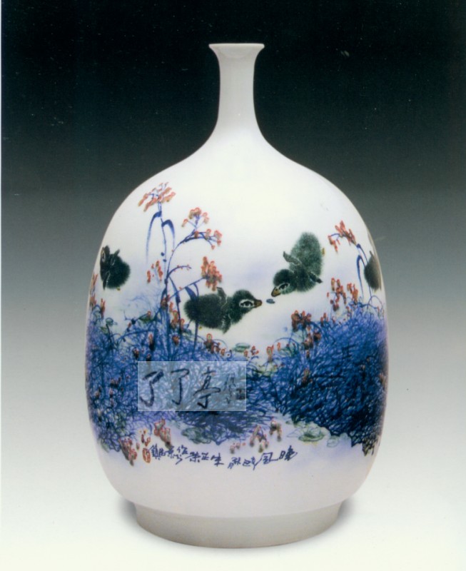 釉下综合装饰瓶《春江水暖鸭先知》