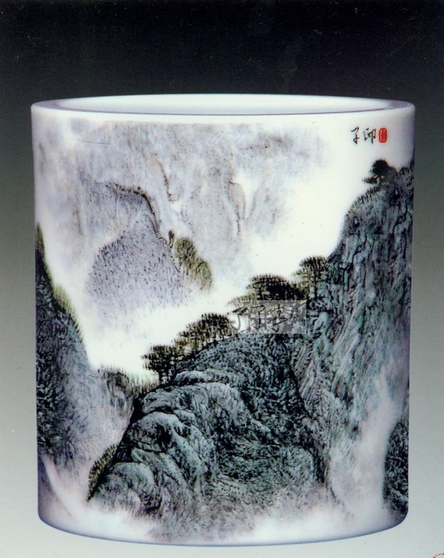 群松听泉(釉上新彩装饰)