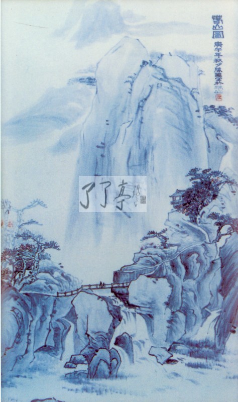 春山图·青花瓷板画