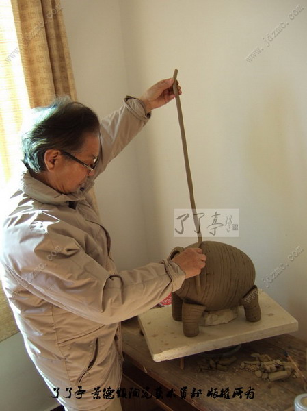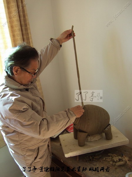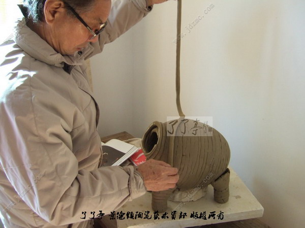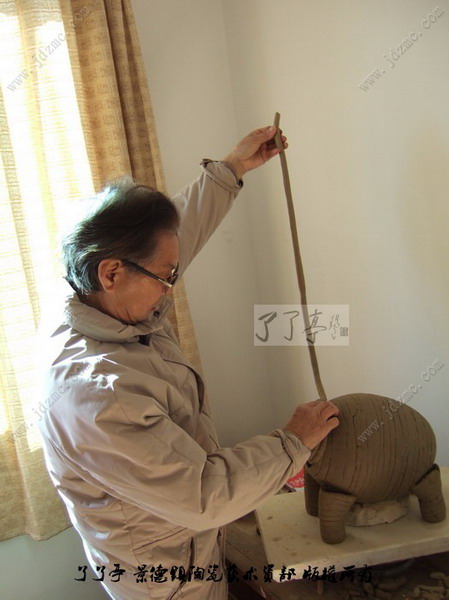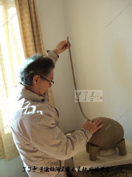 陶艺中盘条是一种古老而基本的成型方法,在周国桢老师的手中或粗或细的泥条在灵活的对雕塑的造型进行着适度的表现。在盘条的运用过程中,会在每一处的接口上都会留下一道道自然的线条,从而表现出了其中手工的成分,也在一定程度上展现出了手工制作的质朴、粗犷,具备了泥条造型的独特美。有些朋友对盘条的作品感触不是太深,这个也许就是西方和中华文化对撞的影响;当然另外一个方面,也是没有一个优秀的队伍来对现代陶艺的进行普及和宣传。其实对于周国桢老师的各个时期的作品来说,似乎已经在对现代陶艺进行了全新诠释了人们心中那样美丑难定、晦涩难懂的陶艺感觉。了了亭·李申盛/文