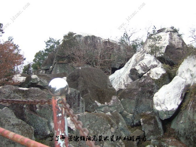 高岭古道的对面有一个“金鸡石”的景点,我跑了一圈山头都没有看到,我想可能就是那些巨石组成的摄人心魄的阵容吧,一路有些危险,游客需要相当的小心,如果跌落山涧,后果不堪设想。我在上面行走,是两个手抓着栏杆,这也难为我,我本来就有点恐高,手心一直冒着小汗。