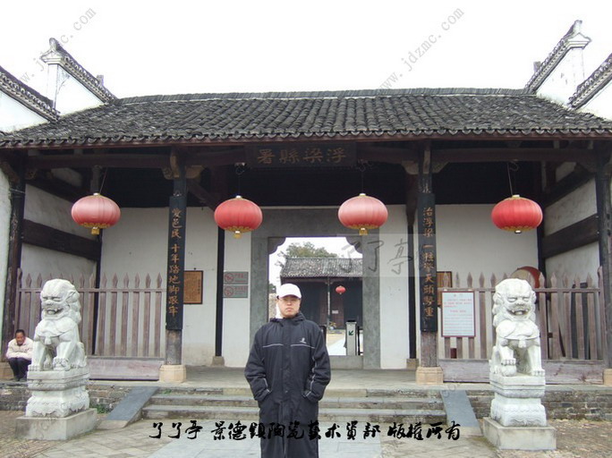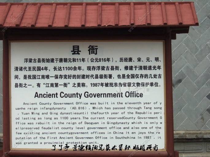 再一次回转直行到底就是我们此行的目的地浮梁古县衙,县衙门口有一颗千年奇桂,桂花树下有一口老井,县衙门口有一个很宽阔的照壁,转过照壁就来到县衙门前,笔者跑上去击鼓了半天,没有见到知县升堂。