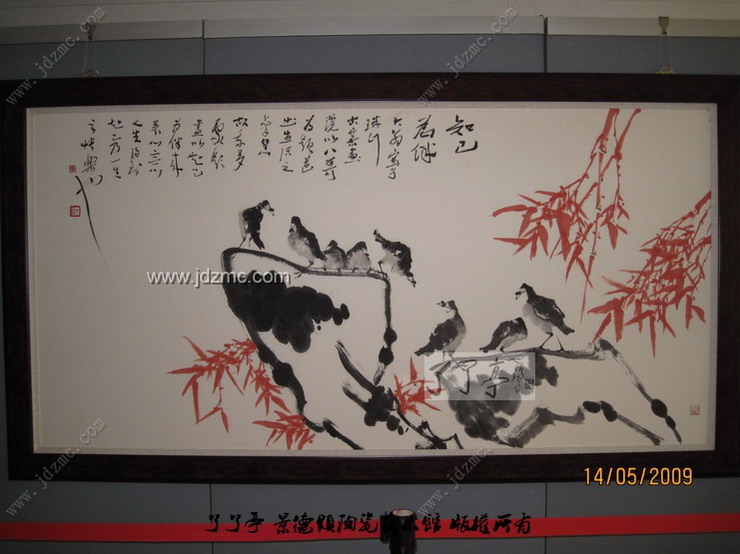大翁的书画展已经开展好多天了,只是因为工作太忙没有能够及时去参观报道,这两天景德镇各个媒体宣传的火热,抑制不住好奇,今天大清早就溜过去看了看,拍了些照片回来供大家欣赏。此次展出的书画、陶瓷作品,大多选于《大翁画集》的原作,展出的陶瓷艺术品均为大翁来瓷都创作的。这次展览中迎面而来的知己为伴的八尺大书画写意“八哥图”,道出了浓厚的生活气息,以知己为伴来表心意,如人生能得到知己乃一生之快乐也。大翁以八哥写照人生的生活,达到了较好的效果。景德镇陶瓷学院教授周国桢、中国工艺美术大师黄卖九、工艺美术大师宁勤征等都给予了极高评价和充分肯定,周教授并欣然题字院“德纳百川。”参观展览的书画陶瓷爱好者纷纷表示院在景德镇能看到这么高水平的画展实属难得。(本文摘选景德镇日报讯)