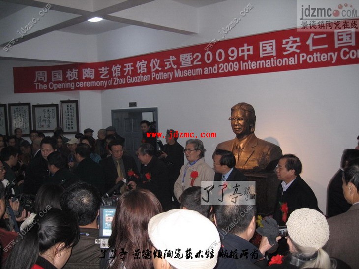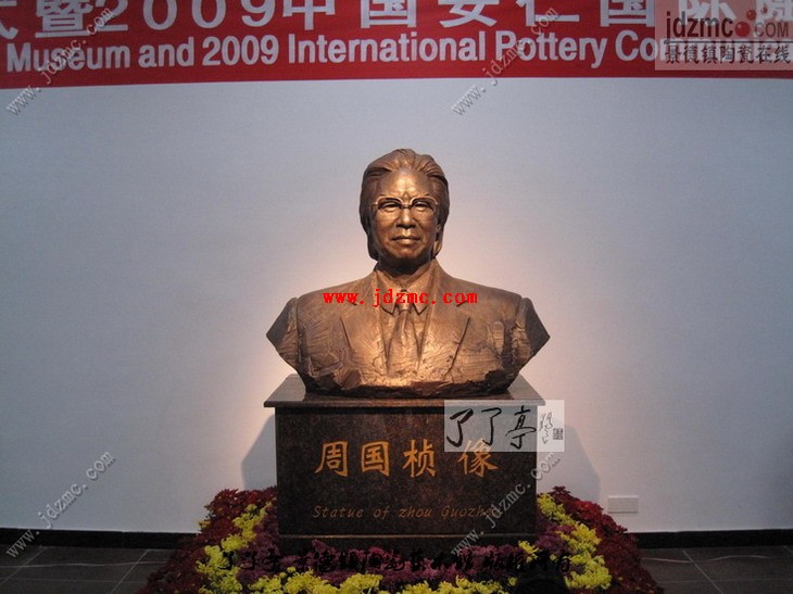 进入陶艺馆,直面的是一尊周国桢的半身铜像。