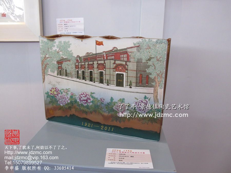 “红色摇篮,千年瓷韵——2011景德镇当代陶瓷艺术展”巡展活动之一,展示了从参选的2000余件陶瓷艺术作品中精心挑选出来的200余件精品,作品是从2000余件(套)应征作品中精心遴选出的300余件(套),既有讴歌党丰功伟绩的主题作品,也有艺术家的代表作,装饰与创作手法涉及粉彩、青花、圆雕、刻瓷等各个领域,创作人员涵括国家级大师、教授和国家一级美术师等最高层面。