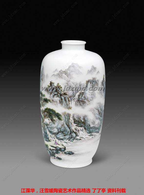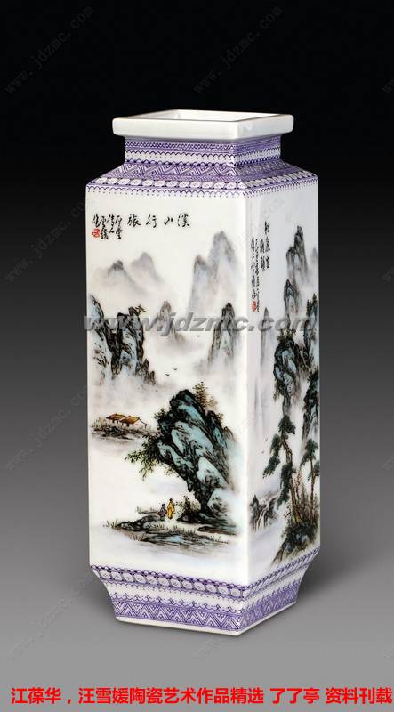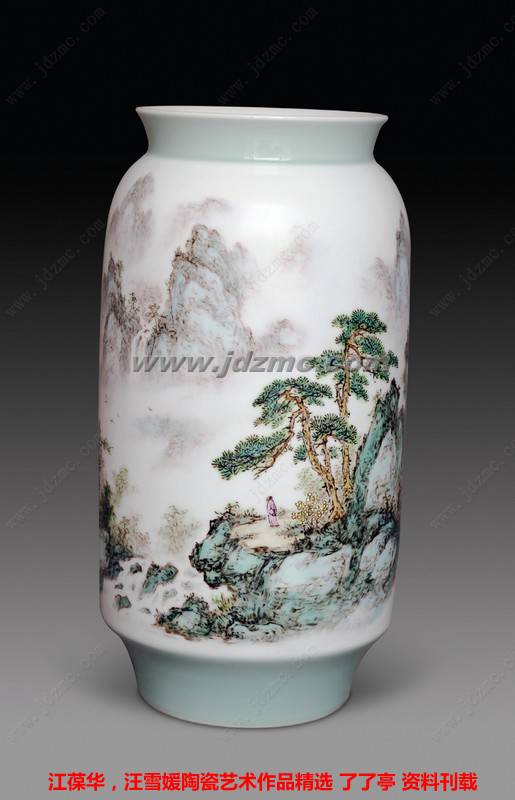 江葆华 1 974年生于江西景德镇,号平山堂传人,江西师范大学本科学历。中国高级工艺美术师,江西省高级美术教师,景德镇市高级陶瓷美术师。系中国工艺美术学会会员,江西省美术教育研究会会员,江西省陶艺教育委员会常务理事,景德镇市艺术教育专业委员会副理事长,景德镇市美术家协会会员,景德镇市“珠山八友”艺术馆特聘高级画师,瓷都美术研究院汪派山水瓷画工作室主任。