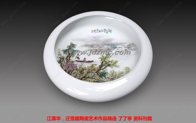 粉彩瓷板·江村图一幅傍岸敞柴扉……………江葆华 汪雪媛