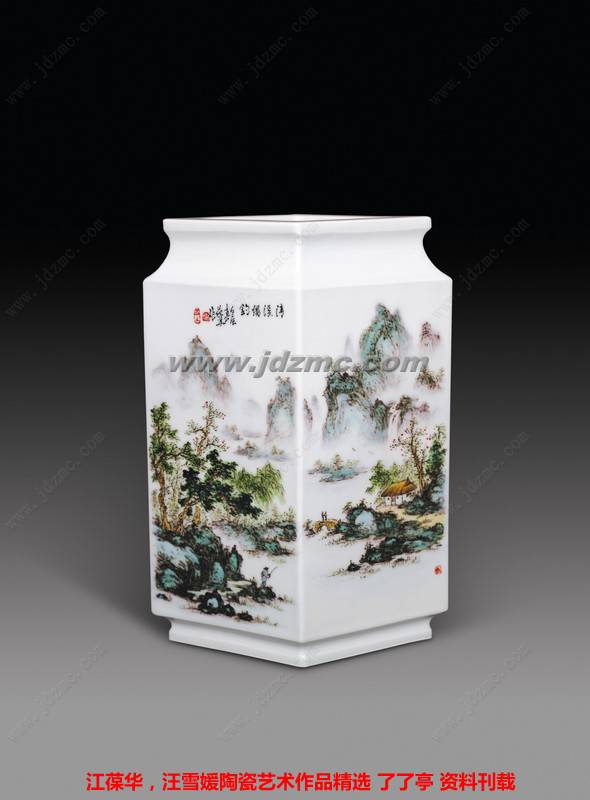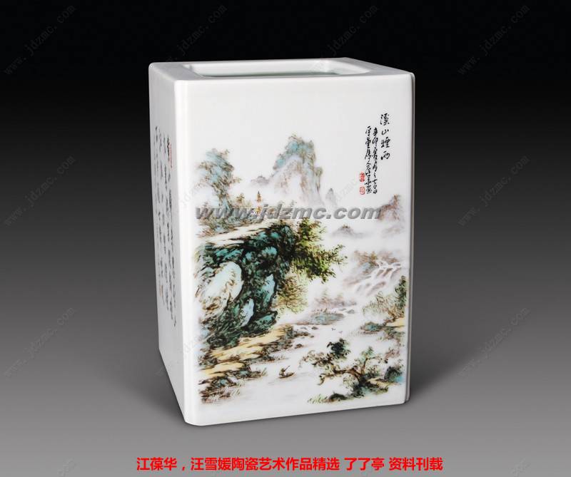 粉彩镶器·溪山烟雨…………江葆华