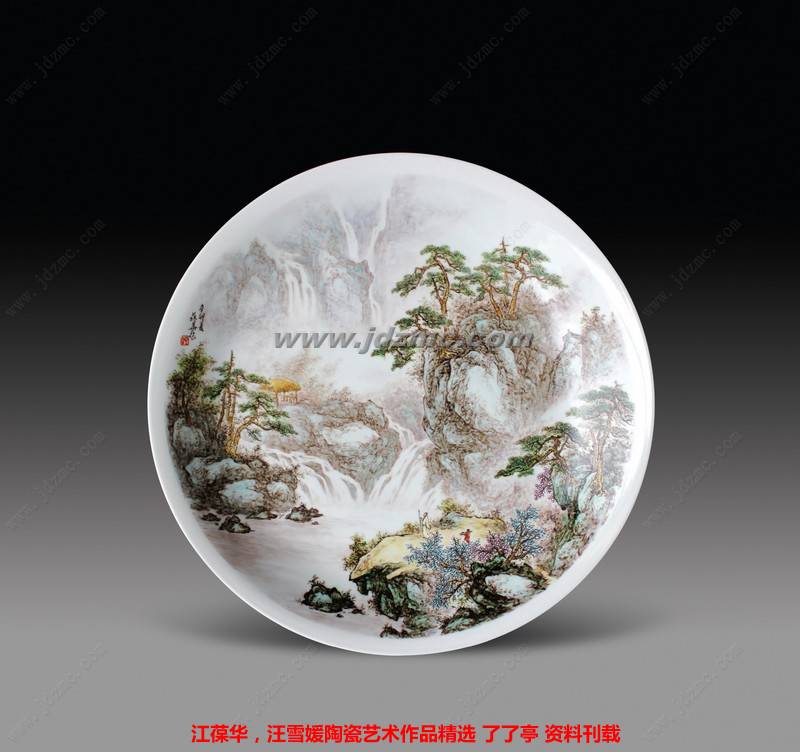 粉彩瓷盘·观泉……江葆华