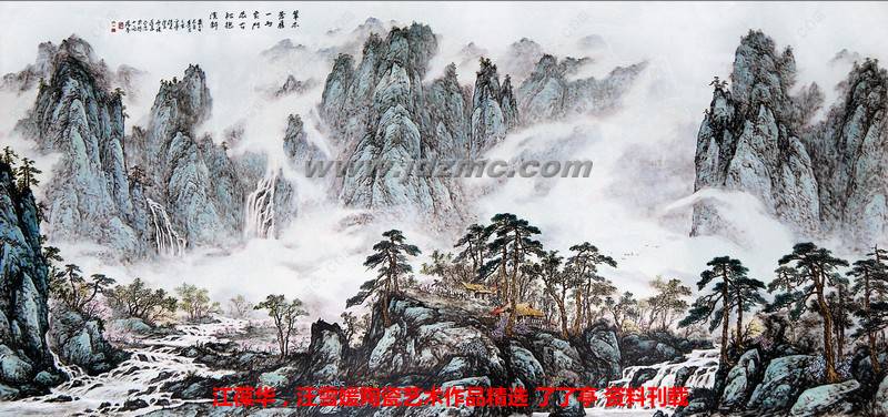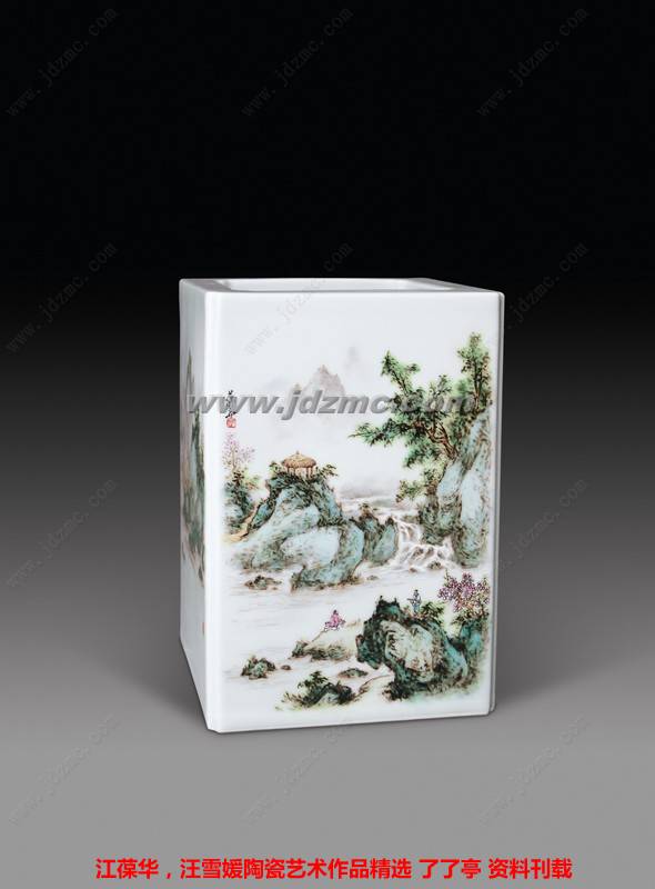 粉彩瓷板·翠木苍藤一两家门依古松抱溪斜…………… 江葆华 汪雪媛