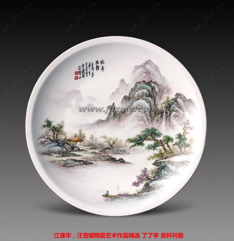 粉彩瓷盘·林亭幽静…………汪雪媛