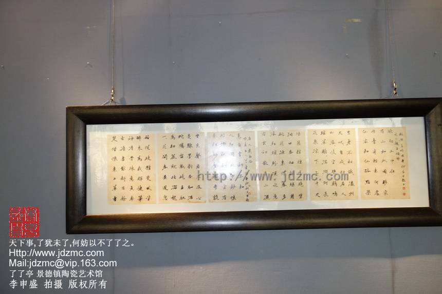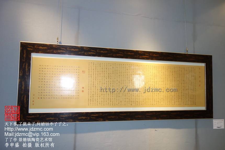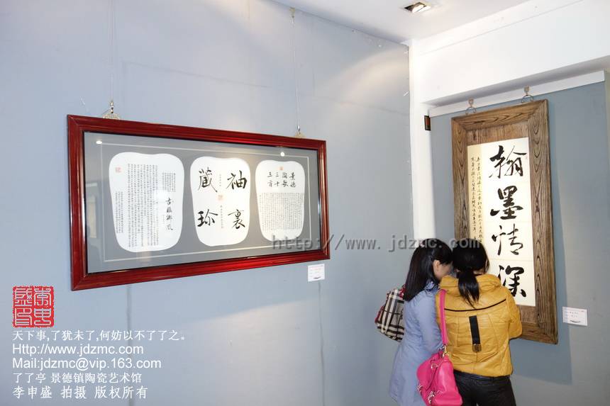 此次作品展共展出了青年书法家方毅、黄洪波、揭金平、雷爱太、李国华、卢平兰、聂建阳、谭子明、汪开潮、王平国、严忠顺、尹志军、朱慧平等13人陶瓷书法作品100余件,有甲骨文、金文等中国文字之源的象形文字,古朴厚重大气;也有楷书、篆书、隶书、行书和草书等各种书法,多姿多彩洋洋大观,而且陶瓷作品也是形状各异,精美无比,既有传统功力深厚和技法纯熟的精品,又不乏体现现代审美观念和探索精神的佳作。