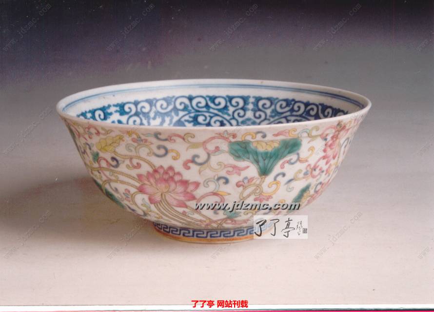 图-6:光绪内青花外粉彩荷莲碗