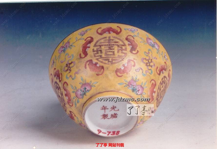 图-8:光绪黄地粉彩红蝠纹碗