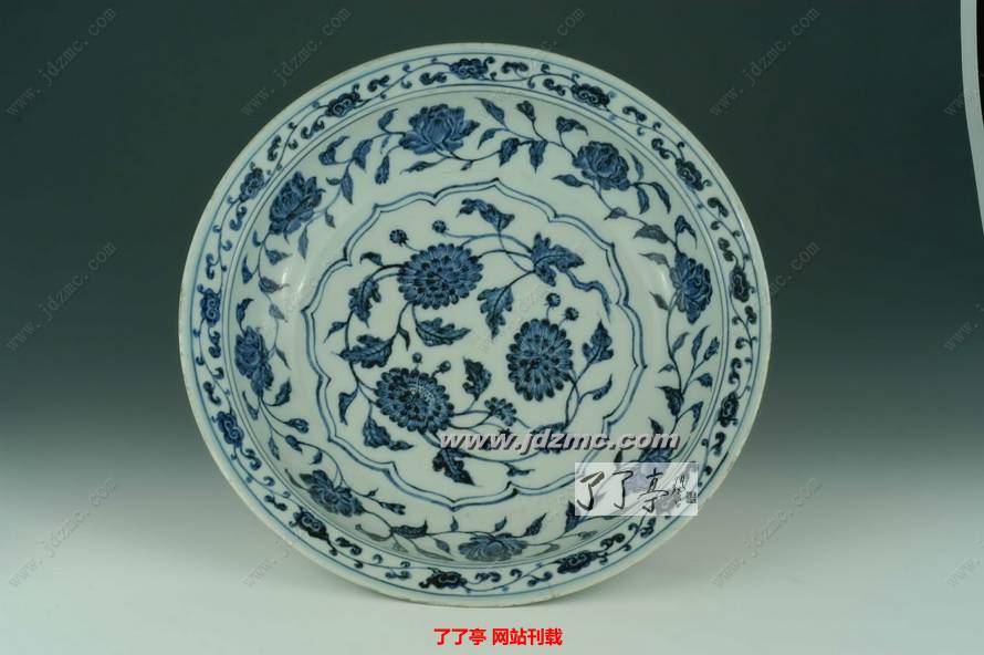 青花缠枝菊花纹板沿盘 高7cm 宽37.6cm