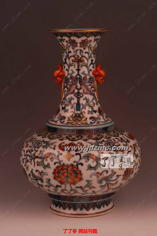 青花斗彩缠枝莲兽耳瓶 高30.7 cm 宽20 cm