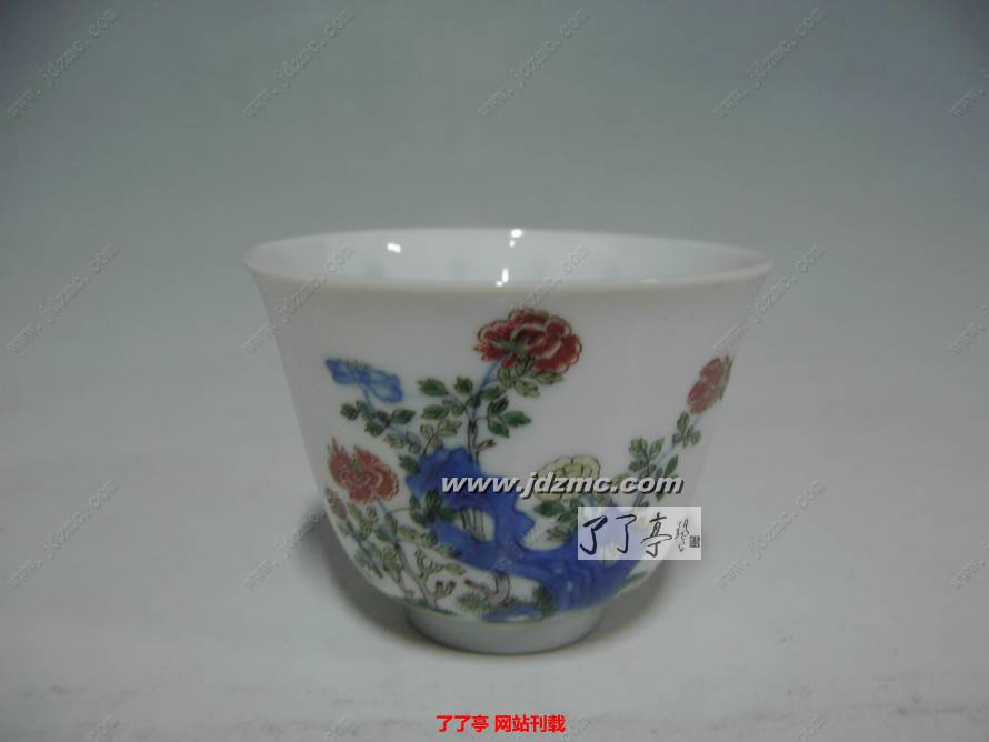 青花斗彩牡丹花杯 高5cm 口径6.2cm