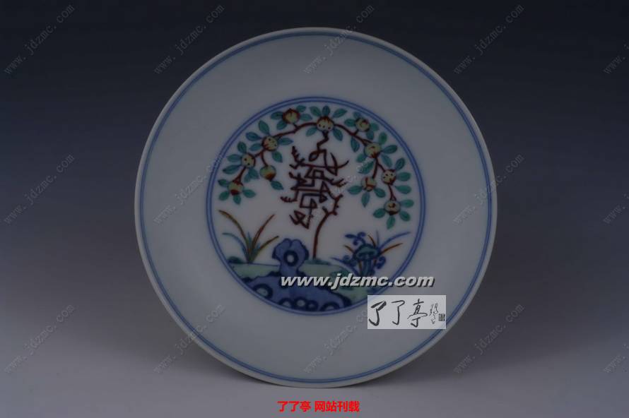 青花斗彩寿字盘 高2.6cm 口径11.4cm