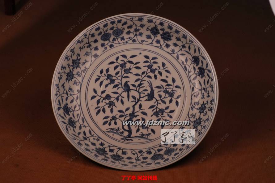 青花石榴花鸟大盘 高9.5 cm 口径55.3 cm