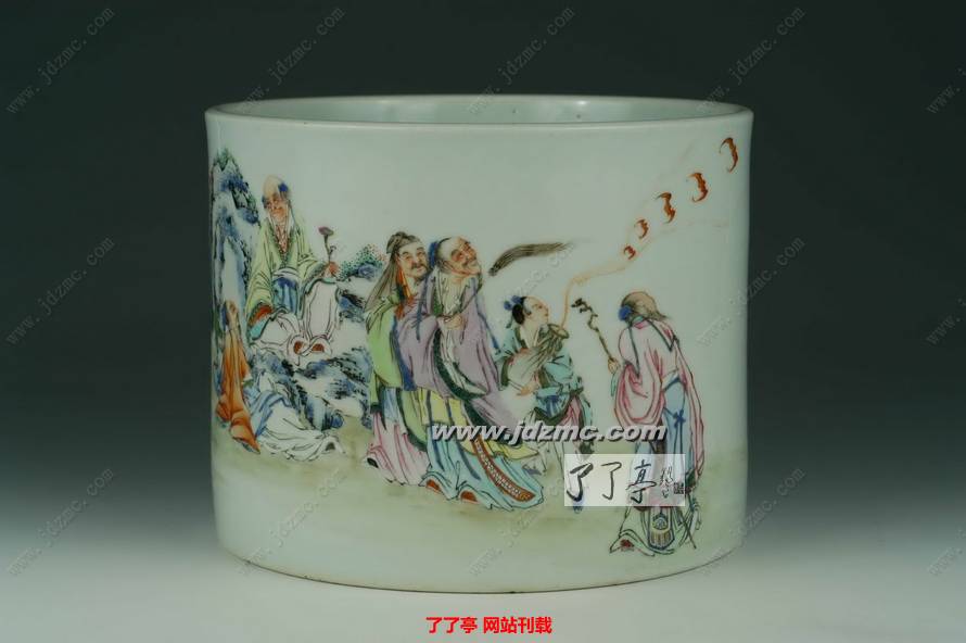 人物群仙图笔筒 高15.1cm 宽18.9cm