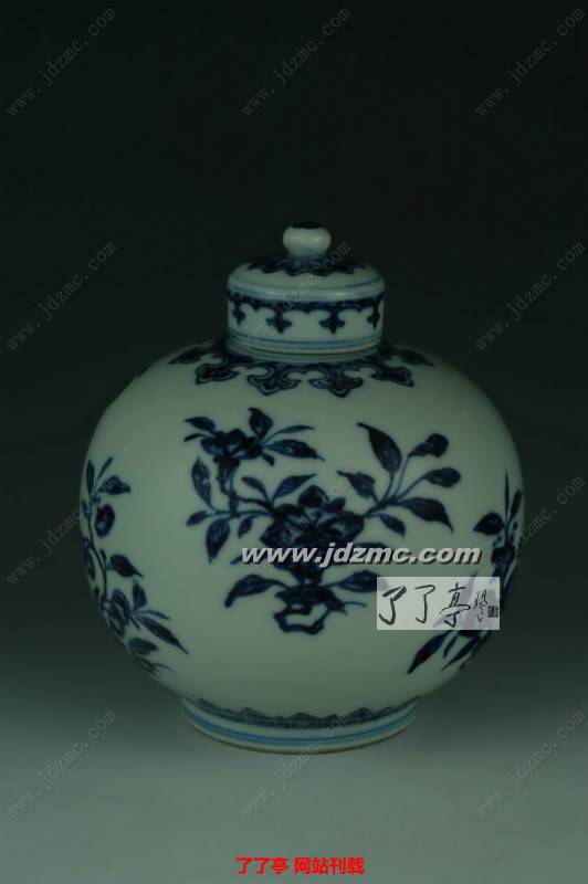 青花折枝花果宝珠盖罐 高12.4cm 宽12.7cm 盖子3.3cm