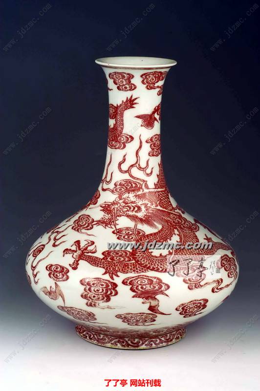 釉里红云龙蝙蝠纹扁肚瓶 高25.6cm 宽19.8cm