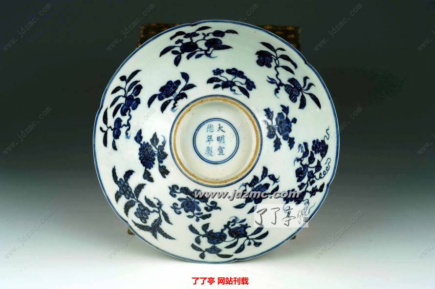 1、明宣德,青花折花枝斗笠葵瓣碗 高8cm 宽22.6cm