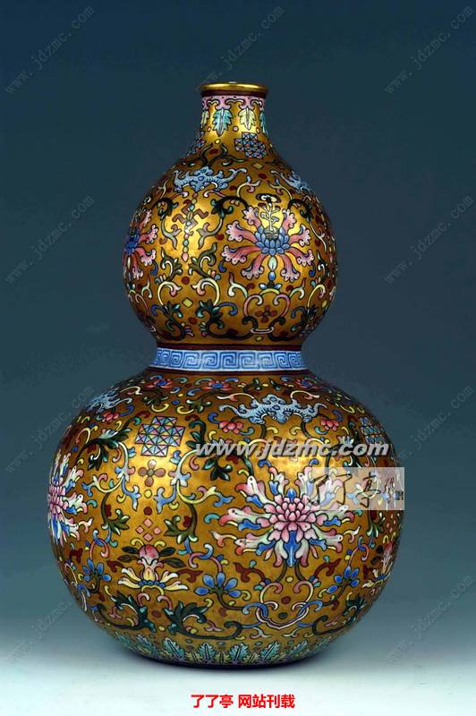 1、清乾隆,粉彩金地缠枝莲葫芦瓶 高22cm 宽13.4cm