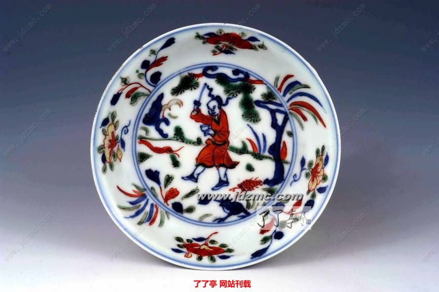 2、明万历,五彩人物配五毒药酒小碟 高2.1cm 口径10.7cm