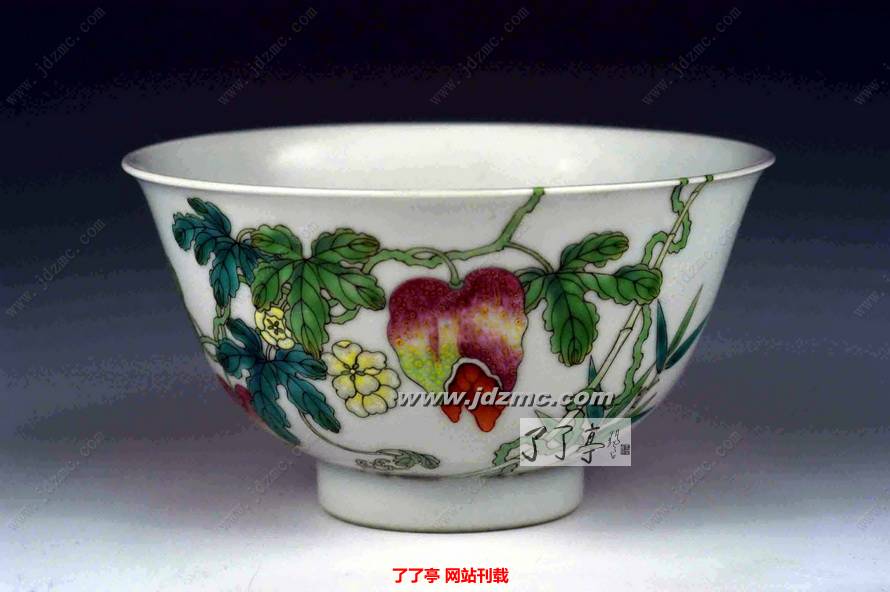 3、清嘉庆,粉彩白地过墙饭贝 高6 cm 口径11 cm