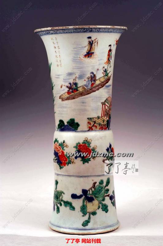 3、清顺治,五彩人物花果花觚 高52cm 口径24.3cm