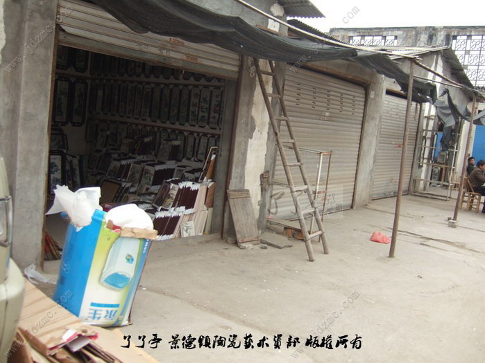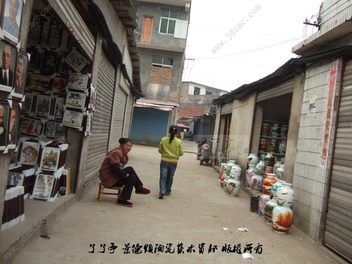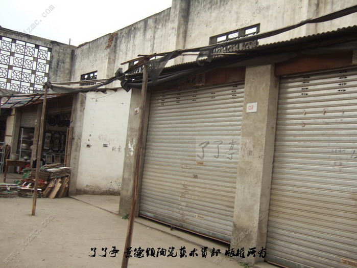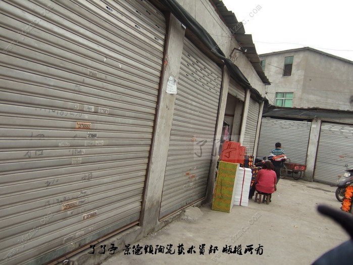 景德镇国贸广场在东风瓷厂原址动工的,但是在国贸的后面东风瓷厂也保留几排简易的一层楼房子对外出租,这里主营贴花和一些和国贸差不多的陈设瓷。今天东风瓷厂的这一片出租的门面关门率已接近百分之七十了,大家都回家过年去了。
