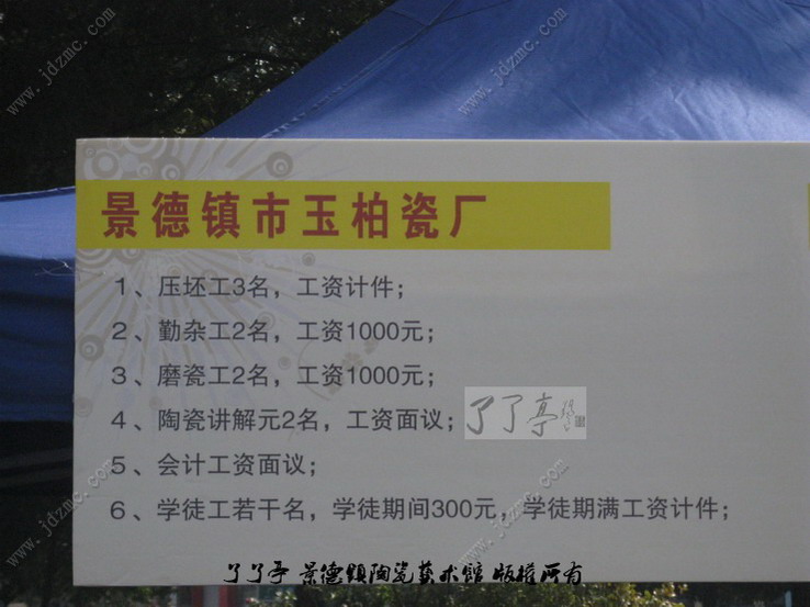 | 景德镇市中心招聘会上陶瓷有关的信息 | |||||