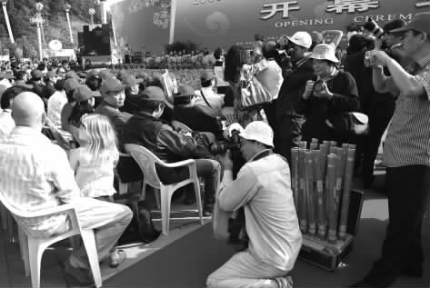 瓷博会开幕式很盛大,老记个个很投入,不过也有例外。 |
