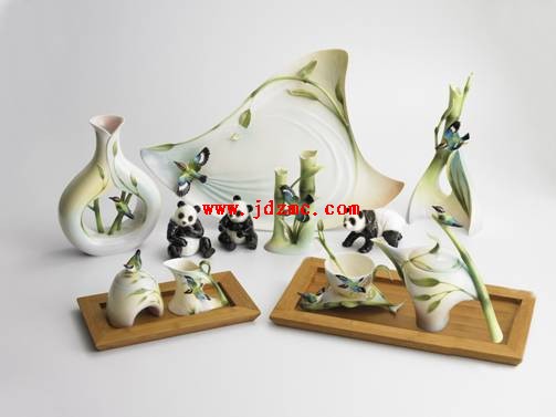 湖水漾清波,青山抱绿树。景德镇海畅法蓝瓷生产基地的厂房、生活区掩映其中,来过这里的人们,很难将它与一个后工业时代的陶瓷工厂联系在一起。海畅法蓝瓷人,不仅创造了世界陶瓷工艺美术中独领风骚的精品,更彰显了海畅法蓝瓷那种追求至善至美的精神:这里不仅仅生产出了为世人瞩目的精美瓷器,也让园林山水般的厂区环境成为一大特色。对于陶瓷,记者虽然是个门外汉,但当记者在景德镇法蓝瓷园区产品精品展厅看到法蓝瓷呈现出的完美与精致时,忍不住在心里说:真是太漂亮了!追求完美才有完美。在这里,人们可以看到,瓷器不再是静态的瓶瓶罐罐,不再是博物馆里阳春白雪的古玩,这一个个精美的摆件、一套套精致的餐具、一盏盏精细的茶杯,把日用陶瓷艺术化、艺术陶瓷日用化的理念诠释得近乎于完美,在为我们的生活增添了无限情趣的同时,奉献出一件件继承传统、追求时尚的陶瓷艺术品。法蓝瓷是21 世纪初世界顶级陶瓷礼品业中一个崭新的品牌,在2002 年纽约礼品展中以《蝶舞》系列获得了该展年度最佳收藏品第一名,改变了上百年来世界陶瓷产业由欧洲名窑独领风骚的历史。 |
