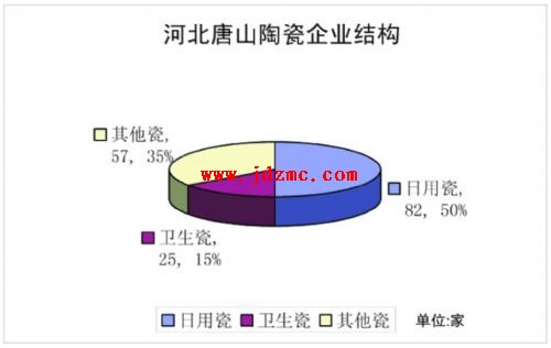 唐山现有陶瓷企业有164家,2008年生产日用瓷1.37亿件,卫生瓷2676万件,分别占全国总产量的0.8%和16%;日用瓷企业82家,占50%;卫生瓷25家,占15%;其他瓷57家,占35%。企业分布在路南、路北、开平、古冶、丰南、丰润、玉田、唐海、乐亭等9个县区。其中路北、开平、丰南三个辖区内区共有陶瓷企业154家,占全市陶瓷企业总数的93.9%,其余6个县区共有陶瓷企业10家,占6.1%。 2000年以来,唐山卫生洁具年出口量位居全国前列,产品出口到全世界80多个国家和地区。据唐山出入境检验检疫局统计,2006年共检验出口卫生陶瓷1804.3万件,货值2.139亿美元。2008年卫生瓷产量2676万件,日用瓷产量1.37亿件,全行业实现销售收入29亿元。 唐山陶瓷汇聚了一大批明星荟萃的大型陶瓷企业。其中唐山惠达陶瓷集团公司已发展成为全国陶瓷制品制造业中效益十佳企业之首;隆达骨质瓷有限公司异军突起,隆达产品畅销海内外。“隆达”、“红玫瑰”、“海格雷”品牌被列入中国陶瓷十强名单。其中“红玫瑰”骨质瓷先后被选为香港特别行政区官邸用瓷、建国五十周年中南海用瓷和澳门特别行政区官邸用瓷;“隆达”骨质瓷的泰富铂金系列成为2001年上海APEC会议宴会指定用瓷。