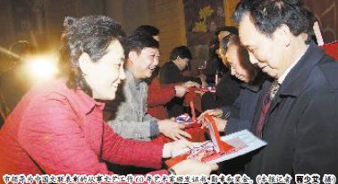 景德镇日报讯(记者叶文兴) 2 月1 日晚,2010 景德镇市文学艺术界百花迎春颁奖晚会在市群众文化活动中心圆形会议厅隆重举行。市委书记许爱民亲切看望受表彰的文艺界代表和演出嘉宾。市委常委、副市长冯林华,市委常委、宣传部长马玉玲,市人大副主任冯上延,市人大副主任、市委秘书长余振泰,市政协副主席王祖庆、何炳钦及市政府秘书长张春萍等参加颁奖晚会。马玉玲致辞。晚会还表彰了我市从事新中国文艺工作60 年的文艺家和2009年文艺界系列获奖者。 马玉玲在致辞中首先代表市委对从事文艺工作60 年的老文艺家致以衷心的祝贺,对全市文艺界过去一年所作的贡献给予充分肯定,并勉励全市文艺界在2010 年再接再厉,为我市文艺界的繁荣昌盛,为我市宣传工作取得更新更好的成绩再立新功。 欢快的舞蹈《欢聚一堂》拉开了晚会表演的序幕,表演者载歌载舞,用翩跹的舞步舞出了瓷都人民凝聚一心谋发展,舞出了瓷都人民齐心协力促繁荣。舞蹈、朗诵、戏剧表演、乐器演奏等一个个精彩节目把晚会推向一个又一个高潮,表达了全市文艺界欢聚一堂共享丰收的喜悦,表达了全市文艺界对美好蓝图的憧憬,更表达了全市文艺界为我市文艺事业繁荣再立新功的决心和信心。我市著名京剧表演艺术家陈啸兰在颁奖晚会上演唱了京剧,获得了在场观众的阵阵掌声。在舞蹈《各族人民迎新春》中,晚会落下帷幕,表演者以各民族大团结为背景,舞出祖国的繁荣盛世、民族的大融合。晚会虽然渐渐落下帷幕,但在所有瓷都文艺界代表心中,晚会永不落幕。在他们的心中,瓷都文艺之花永不败,百花争放,开得那般红艳艳。
