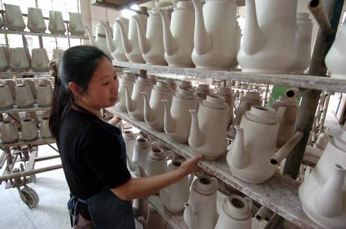 最近两年来,我市一些陶瓷作坊主发现,要想找一个不错的陶瓷画工,变得越来越难了。是什么原因让景德镇最不缺的人才也变得紧缺起来,连日来,就此问题,记者展开了调查。 满墙都是招工广告 进樊家井仿古陶瓷村,最吸引人眼球的除了那无处不在的仿古瓷,要数那些张贴在各条路口显眼处的招工广告。“急招中高档粉彩、仿古、人物、花鸟……”“本作坊大量招工、青花点工、青花图案、花鸟、山水……”这些招工广告一张叠着一张。 “别看这些广告贴得这样热闹,能招到人的不多,想这样招到好的画工,更不太现实。”陶瓷作坊主王女士的店铺就在樊家井村的入口处,她家店铺的正对面,就是一面贴满了招工广告的围墙。 按着一张招工广告上联系电话,记者拨通了业主包先生的电话。包先生在电话 中告诉记者,最近几个月来,他作坊里的人手一直很紧,他原本认为,樊家井陶瓷仿古村是各种画工较为集中的地方,自己的广告也许能派上一些用场。可是广告贴出去了一个多星期,他才接到了一个求职电话,而且还是一个学艺才刚刚一个多月的新手。 画工为何如此难招? 画工如此难招,是否预示着景德镇艺术陶瓷的市场很红火?事实并非如此。 陶瓷作坊主徐先生说,在刚过去的金融危机中,景德镇的很多陶瓷作坊也受到了牵连,大量的陶瓷作坊关门歇业,很多熬下来的作坊为了生存,只好拼命压低瓷器的价格。正是由于利润低,业主就不得不想办法压低成本,而缩减画工的工资,就是其中的手段之一。 “工资不高,谁还愿意来做这一行?”徐先生告诉记者,目前,他的陶瓷作坊里有五六个画工,工资最高的2000元左右,最低的,只有一千出头,人员并不太稳定。 徐先生介绍,目前,出生在景德镇市区的80后和90后,愿意干画工这一行的人员已越来越少,很多画工来自景德镇周边的农村,即便是农村来的孩子,如果没有点耐性,学了一段时间,也会改行。 在王女士的店里,记者目睹了她几桩生意的交易过程。一根两百件的青花雕刻仿古葫芦瓶,王女士的开价是100元。一番讨价还价后,这件葫芦瓶最终以90元成交。 王女士告诉记者,这件葫芦瓶仅画工的成本就要50元左右,再算上烧窑、买坯、吹釉等各道工序的本钱,她卖出这件瓶子,赚到手的钱还不到10元钱。最重要的是,瓷器还不能烧坏,不然,自己赔的钱卖好几件也赚不回来。 “赚不到钱,我们只好请工钱较低的画工,因为工钱低,画工们追求速度才能赚到更多的钱,产品的质量自然可想而知。产品质量不好,我们业主卖不到钱,画工的工资自然也涨不上去。”王女士认为,在景德镇的中低档陶瓷市场,目前已陷入了一种恶性循环,长此以往后果很严重。