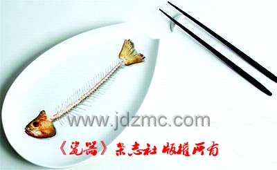 是谁练就了一口大钢牙把盘子也咬了一口?瞧瞧,连牙齿印儿都清晰可辨。这种夸张幽默的手法,仿佛印证了那句老话:好吃得连盘子都吃掉了,这是客人对餐桌主人宴客的美妙食物表达的最大敬意。设计师把咬下的一小口巧妙地组合成为筷子架,既幽默又实用,更为餐桌增添了一份话题。而吃完后盘子底下露出的鱼骨仿佛也是给宾客一个惊喜。