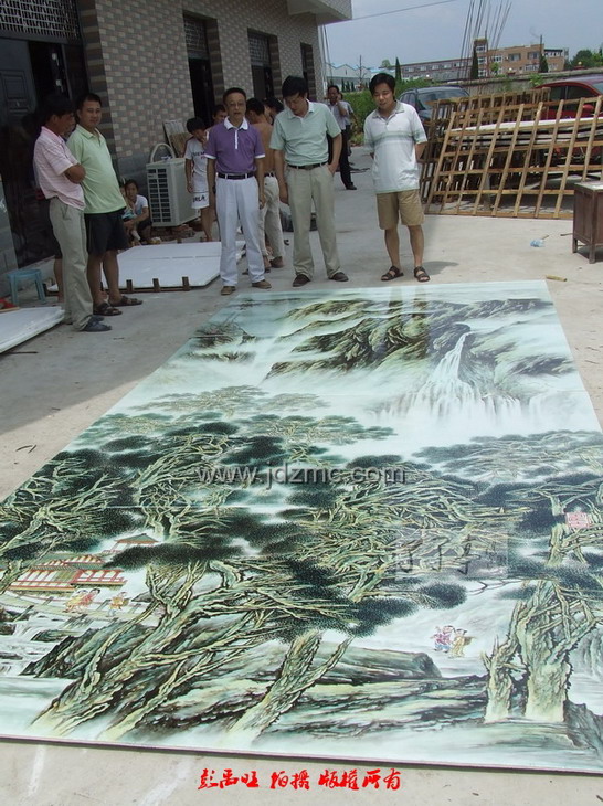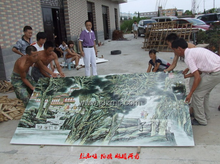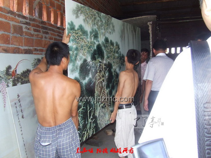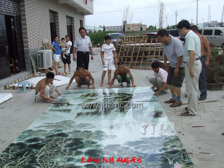 (彭禹旺)8月6日下午1点左右,由江西省工艺美术大师王卫平、邓幼堂、涂少波三人合作,至今以来堪称最大的粉彩瓷板画《高山流水》完美出炉,并启程运往南昌,于当晚连夜安装于江西国宾馆(前湖迎宾馆)1号行政厅。 |